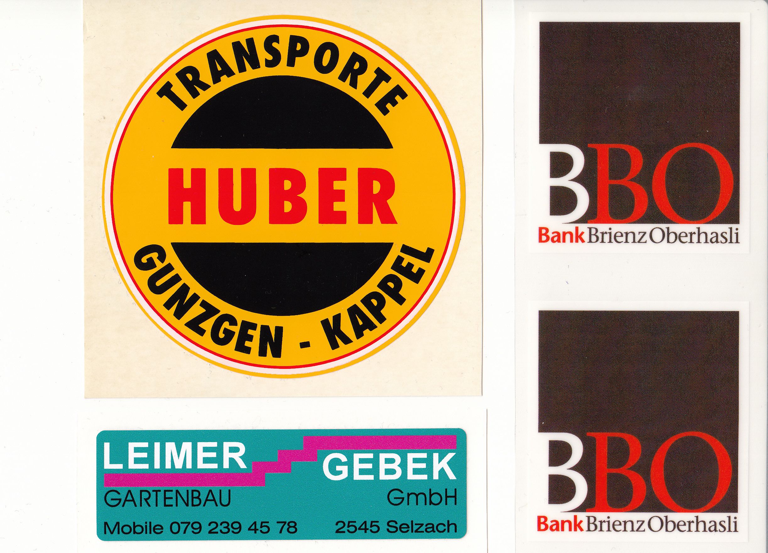 Folienkleber sind witterungsbeständig, lichtecht und wasserfest. Sie eignen sich für den Innen- und Aussenbereich. Sie können einzeln zugeschnitten, auf Bogen oder mit Konturschnitt hergestellt werden.